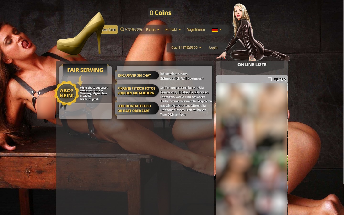Die Startseite von BDSM-Chats.com ist alles andere als Jugendfrei und stellt unter anderem sexuelle Handlungen dar, die man so nicht einfach zugänglich machen sollte. Im Hintergrund sehen wir hier nämlich eine fast nackte Frau, die sich von einem gefesselten Mann lecken lässt. Ansonsten sehen wir hier noch ein paar schwammige Informationen über das Portal und eine Liste mit Mitgliedern, die derzeit online sind. Auch die Profilbilder hier stellen teilweise übertrieben Praktiken dar. In den AGB finden wir direkt Hinweise darauf, dass wir es hier mit Abzocke zu tun haben.